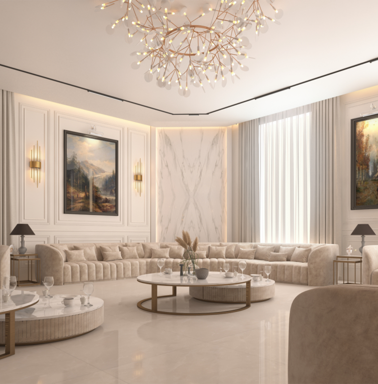 Our interior designs stand out by combining luxury and beauty, creating enchanting spaces characterized by their striking elegance. We always strive to achieve the highest standards of quality and stunning design, without sacrificing ease of implementation and cost-effectiveness.